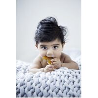 The Natural Rubber Fish Teether is ideal for a teething baby. Chewing on a Natural Rubber Teether with its textured surfaces will offers relief by stimulating the gums in preparation for the arrival of the teeth.