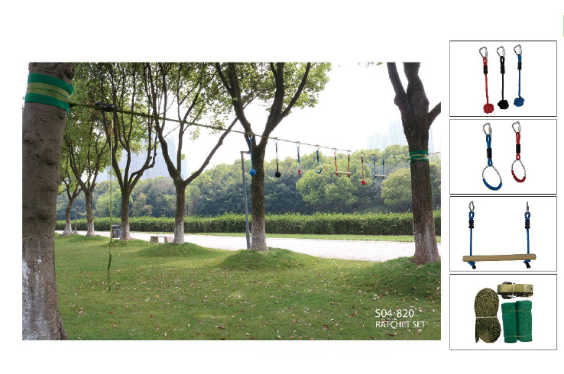This versatile backyard outdoor hanging Ninja obstacle course kit allows you to move the attachments closer or further apart as your skills improve. The Ninja sett is easy to install and take down, meaning you can take your training with you! Hang between 2 posts or trees 2.2m above ground for "Ninja Training" at your convenience.
