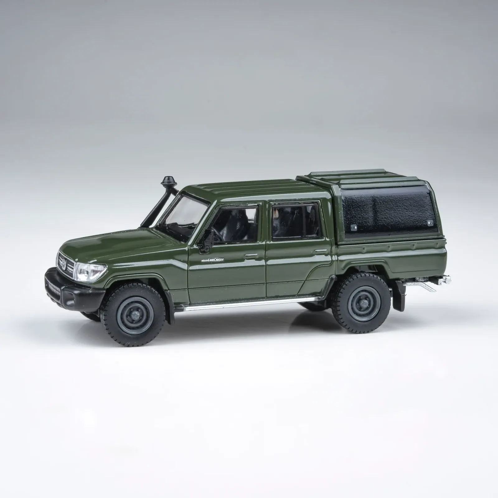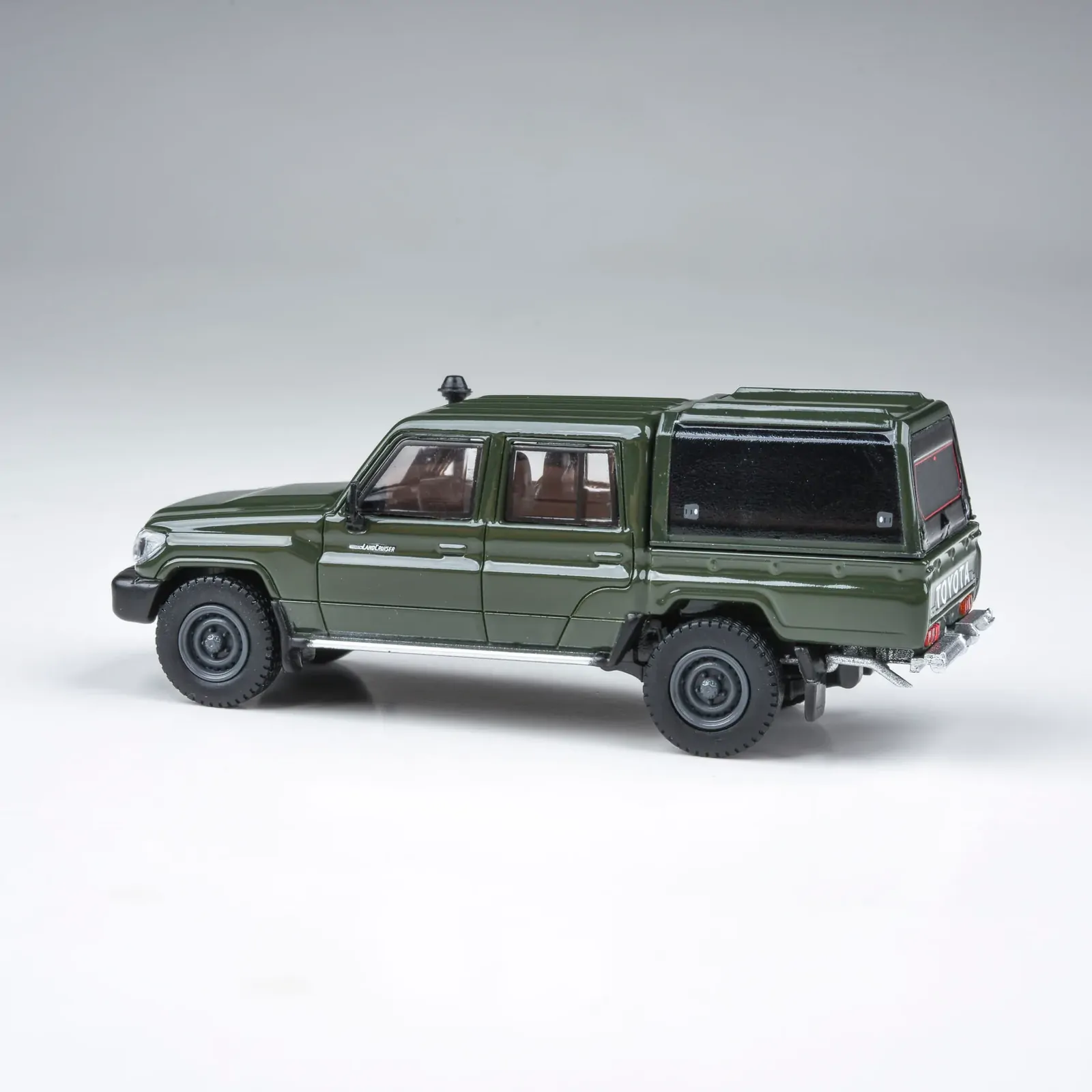 PARA64 proudly delivers this rugged facet of the Toyota 70 Series jewel in 1:64 scale in Military Green with canopy over the truck bed. The detail, rolling wheels and separate parts for lights are to our usual standard.