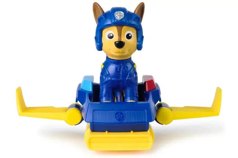 Fly into action with the PAW Patrol Action Pups Chase and his awesome hoverboard rescue vehicle! When it’s time for an action-packed rescue, clip Chase’s feet into position and extend the hoverboards wings, transforming it into an exciting toy airplane, before taking to the air for an adrenaline filled rescue mission! Chase stands over 2-inches tall and is geared up in his blue flight jacket & helmet, just like in the show! For even more exciting ways to play, look for Marshall, Skye, Rubble, Rocky & Zuma, to assemble the ultimate rescue team! PAW Patrol preschool toys & toddler learning toys are gifts for kids who are fans of the show, fostering imaginative pretend play and enhanced fine motor skills.
