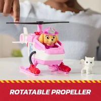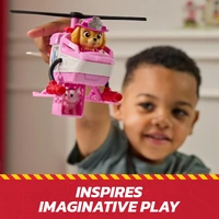This helicopter toy is over 7 inches long and 4 inches tall, making it the PAWfect size for dynamic pretend play. Skye stands over 2 inches tall in her fire rescue gear, ready to embark on heroic missions. The chopper features a built-in rescue basket and a rotatable propeller, adding excitement to every rescue operation. With a push of a button, activate the rescue basket and save the day alongside Skye's kitty friend. Genuine PAW Patrol styling ensures it looks just like it does in the show. These PAW Patrol learning toys are PAWsome for a birthday, Christmas, or any holiday.