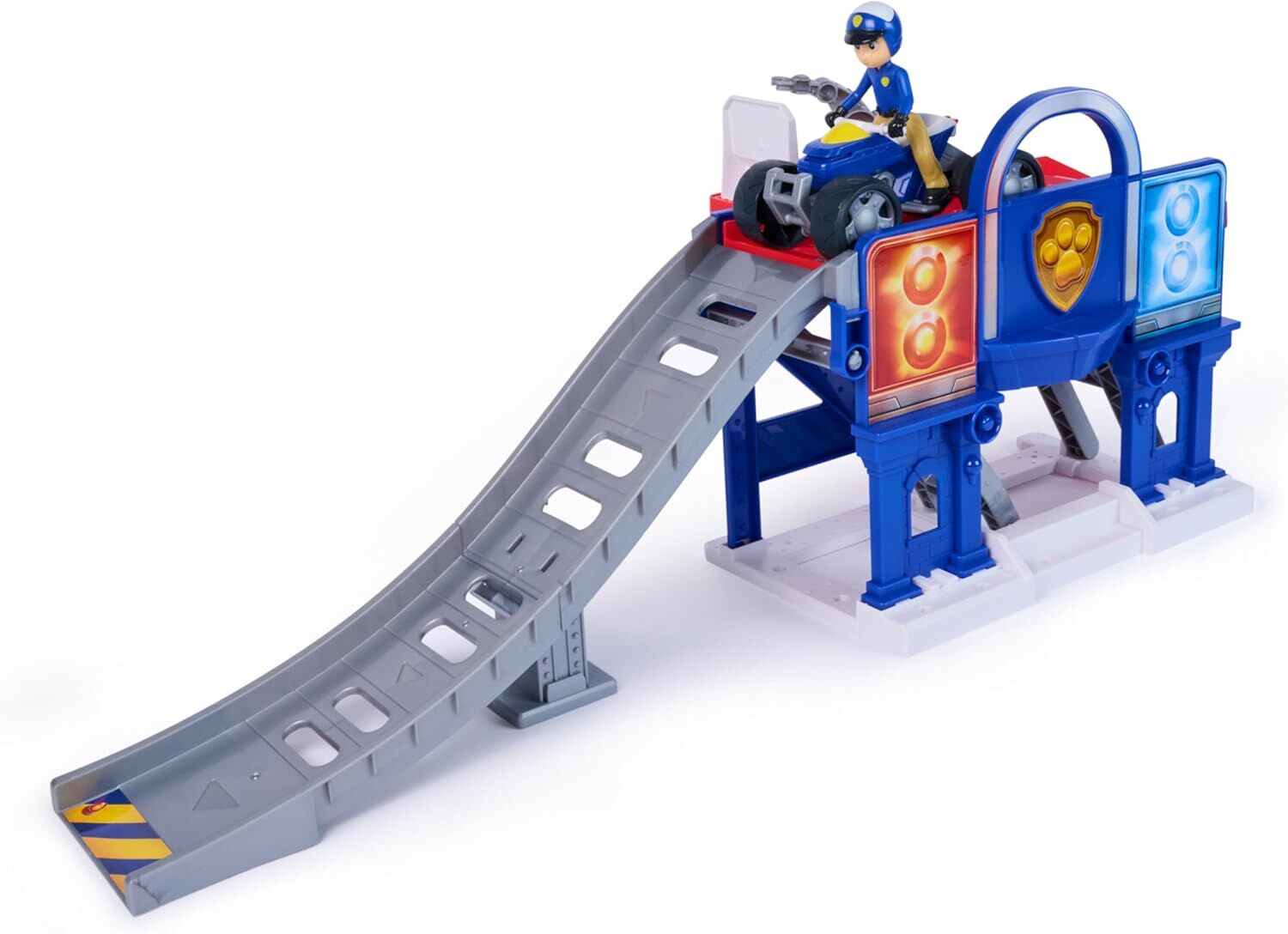 Introducing the PAW Patrol Search & Rescue Lift 'N' Repair playset, bringing adventure and creativity home. Measuring over 76 cm long, this set includes an exclusive 9 cm Ryder figure in his search and rescue uniform, along with his trusty Speedy vehicle. Kids can drive Ryder onto the platform, lift him into the repair station, and use the claw arm to simulate repairs. Once all done, launch him up the ramp straight into action! With a posable head and limbs, little ones can pose Ryder in different ways for rescue-filled missions. Plus, the set is compatible with other PAW Patrol vehicles and figures, allowing for even bigger fun and missions. Whether as a birthday present or for a day of play, this set is a heroic choice for kids who love action figures and toy vehicles. Relive unforgettable moments from past seasons of PAW Patrol, such as Fire Rescue or the PAW Patrol movie, or create new adventures with the pups and their vehicles for endless hours of fun inspired by the series.