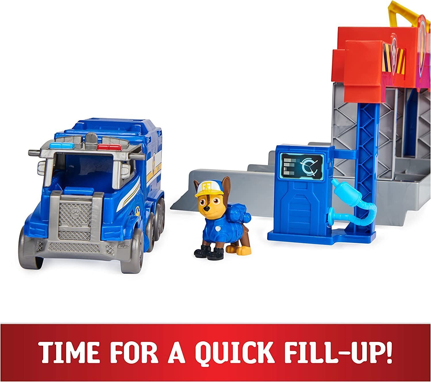 - CHASE ACTION FIGURE & TOY TRUCK: Featuring Chase, in his new Big Truck uniform! Put Chase in the driver’s seat, head to the launcher, then push the button in the command center to blast into action!