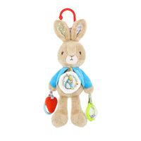Cute and playful, the Beatrix Potter Peter Rabbit Activity Toy in blue is an adorable interactive toy your little one will love. With appealing character detail, a teether, beaded rattle, peak-a-boo mirror and crinkle, playtime fun will last for hours. The on-the-go clip makes this activity toy easy to attach to a crib or stroller for on the go fun!