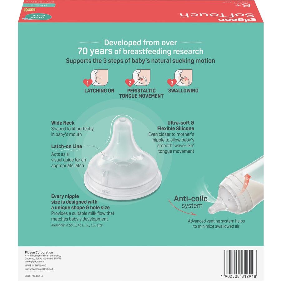 Backed by over 70 years of continuous research, Pigeon has identified the 3 key steps of a baby’s natural sucking motion and incorporated them into this innovative nursing bottle. Enjoy fuss-free feeding and a greater peace of mind.