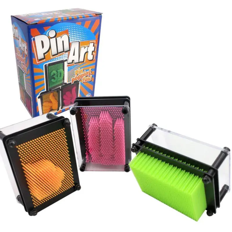 Pin popping Fun! Comes in assorted colours; Pink, Orange & Green. Experience the joy of creating impulse art with a simple press of your hand, and watch as your masterpiece takes shape in vibrant Pink, Orange, or Green. This novelty item is perfect for sparking creativity and adding a touch of whimsy to any room.