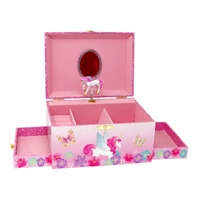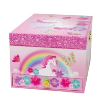 Pink Poppy's limited edition Unicorn Rainbow Luxury Musical Jewellery Box is a gorgeous keepsake portraying beautiful illustrations of Unicorns dancing. It features an oval mirror, flocked interior, side drawers, and ring compartment. The wind-up design plays the classic tune 'Waltz Of The Flowers' whilst the Unicorn figurine twirls delightfully.