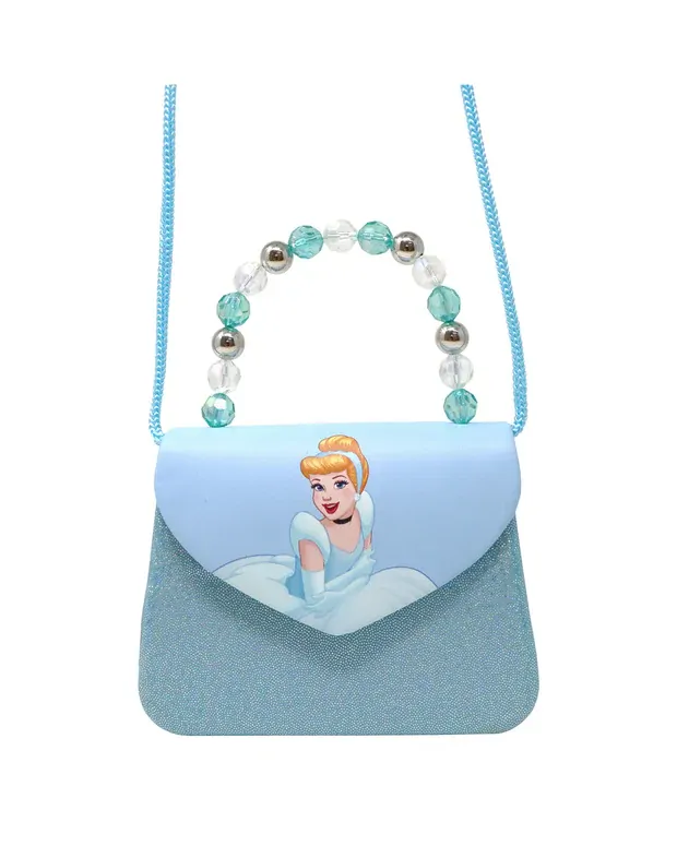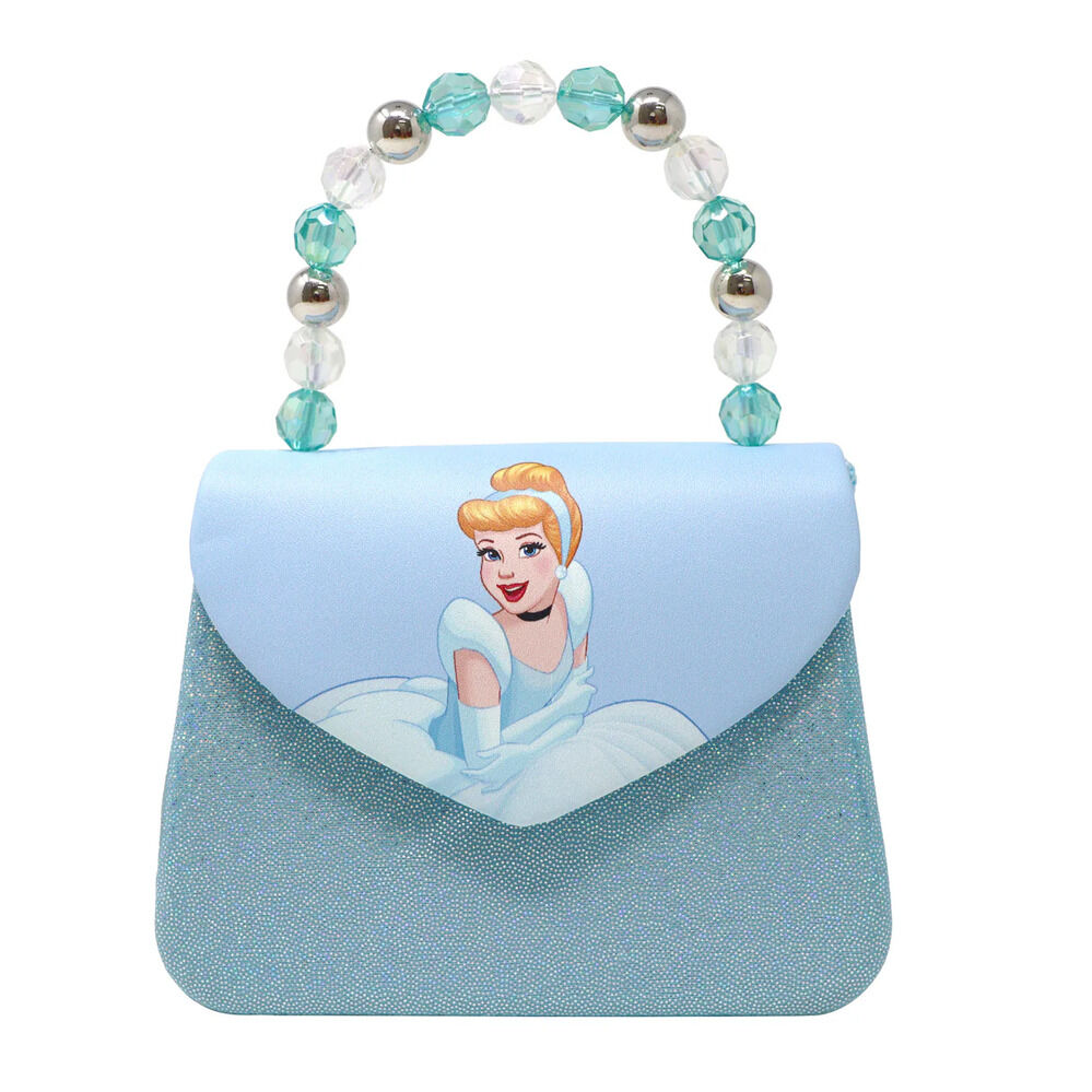 Disney Princess Cinderella Print Handbag is fabricated in the sparkling fabric of Cinderella's signature colour and features a Cinderella print on the envelope top flap. It features a fun beaded handle and an additional shoulder strap for keeping hands free for play.
