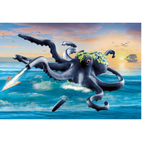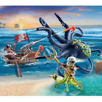The giant octopus has a water-spraying function. The pirate boat floats and can accommodate one PLAYMOBIL figure.