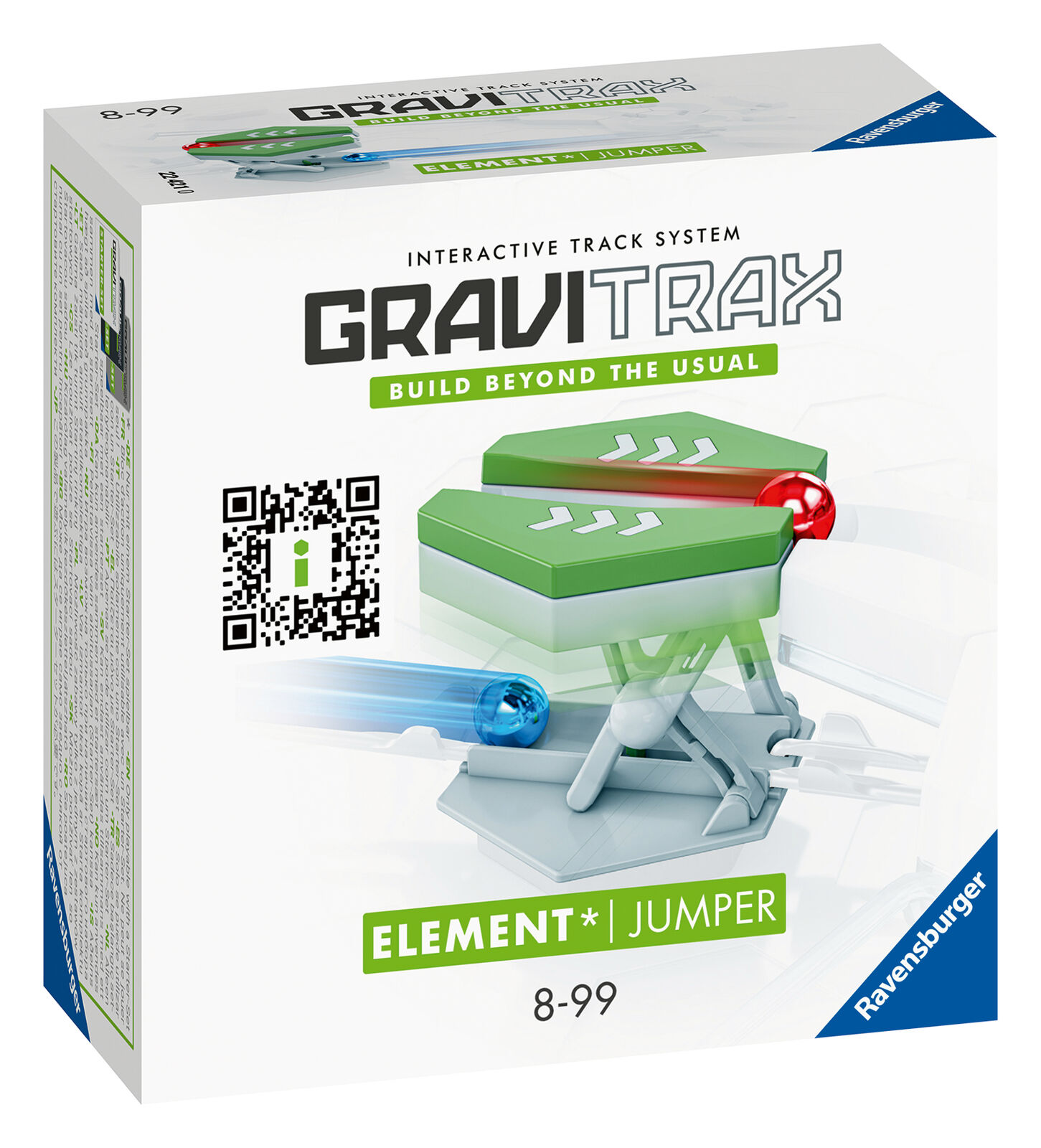 GraviTrax 4th Generation Add on: Move up a level! The Jumper lifts your marble to a higher level while simultaneously creating a path for a trailing marble to continue its journey on the track below. Combine the Jumper with your GraviTrax Starter Set (sold separately) for an exciting addition to your marble run. Can you get your marbles jumping?