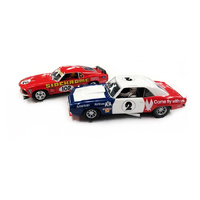 Bring classic American muscle car battles right into your living room with the Scalextric Muscle Car Mayhem set! Perfect for an afternoon of family racing fun, this 1/32 scale set features two iconic rivals: a tough 1969 Chevrolet Camaro and a formidable 1969 Ford Mustang. These ‘Super Resistant’ cars are built to handle intense racing action.