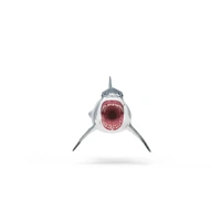 The Megalodon with its grey, scarred skin is a real prehistoric giant. Despite its impressive size of around 17 meters and a weight of up to 60 tons, it swims through the sea at lightning speed – always on the lookout for prey. No wonder: Because of its size, it is always hungry and has to eat a lot. He opens his large mouth threateningly and reveals his sharp shark teeth. Once he grabs his prey, there’s no escape!