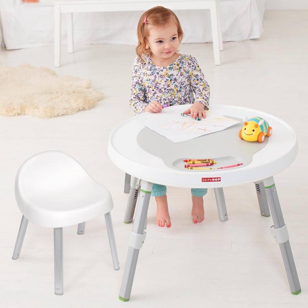 As baby grows, the activity centre converts for easy cruising—ultimately becoming a clean, sturdy table for coloring, playing and more.
