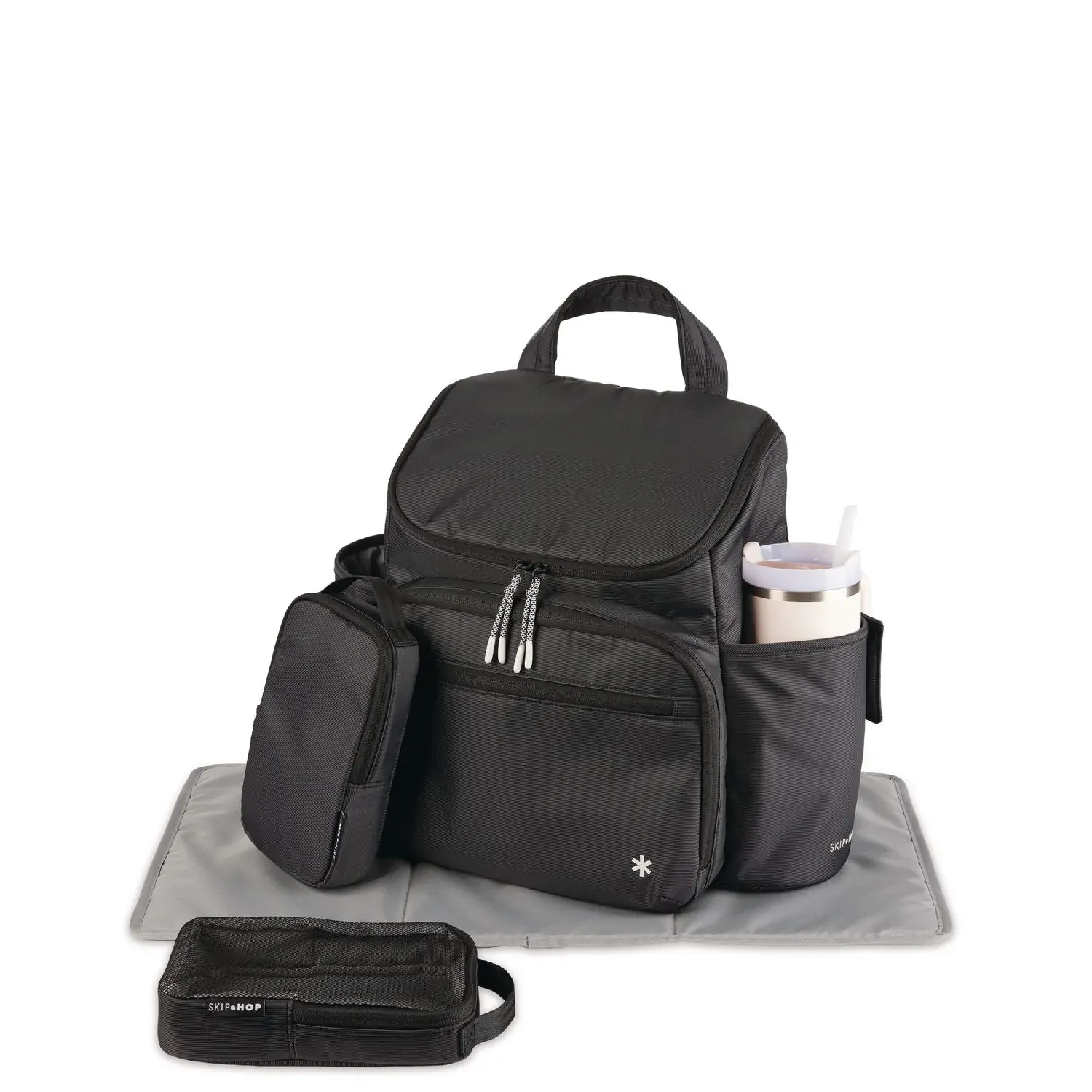 Meet the next generation of Skip Hop's best-selling Forma Nappy Bag Backpack. Designed for busy parents on the move, this new design features an adjustable bottle pocket that fits up to 40oz. tumblers & handles - because we know you love to stay hydrated when you’re out and about with baby
