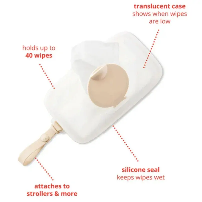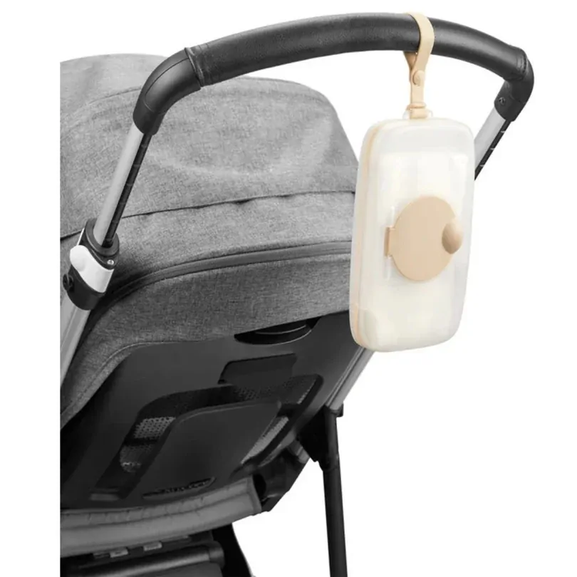 With a secure, wide opening and a moisture-stay seal, this baby wipes case is the answer to fresh wipes every time. Whether you put it in your nappy bag or use the built-in strap to hang it on your stroller, it’s the perfect, go-anywhere solution.