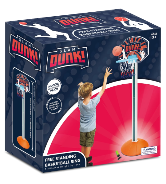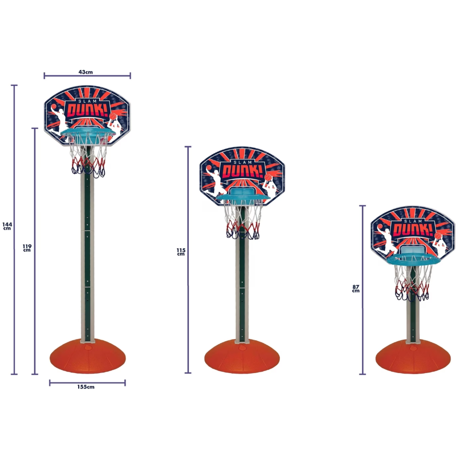 The ring height sits at 4Ft and is adjustable to grow with all ages. This awesome unit is for indoor and outdoor use and comes with all your favourite characters on the backboard to cheer your goals home.