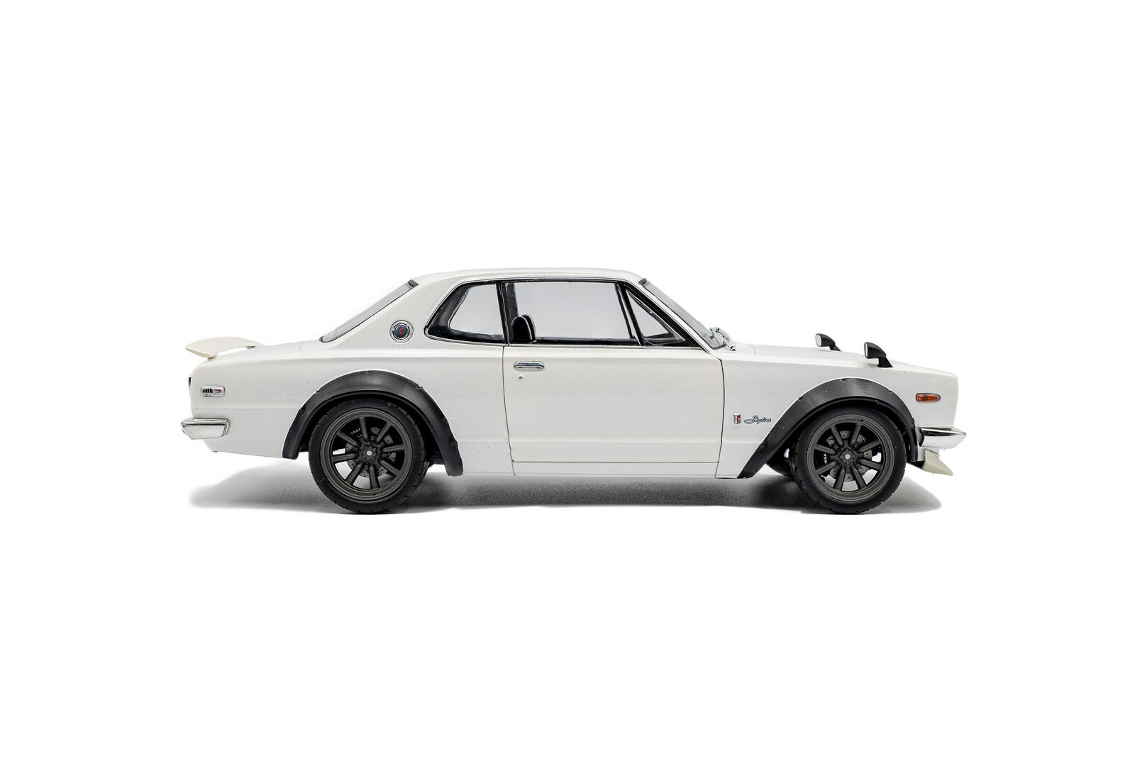 The third generation Nissan Skyline was produced from 1968 to 1972. Known as the C10 code, it is available in many versions, including the very first GT-R nicknamed “Hakosuka” (Hako for box and Suka, Skyline’s diminutive). Solido imagines a tuned version of this legendary Skyline in the pure tradition of Japanese trainers. With its Pearl White livery and very sixties lines, the C10 immediately seduces tuning fans.