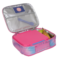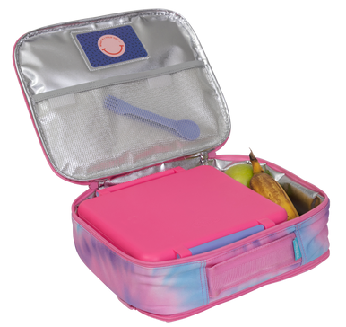 The Big Cooler Lunch Bag is the ideal bigger size, perfect for fitting the Big Chill Pack and the All-in Lunch Box with extra room for fruit or small containers like our Snack Attack Box side by side! With aluminium food-safe silver lining, a back zip pocket that perfectly fits the Big Chill Pack, outside name label and an additional inside pocket for 'Love Notes' this is your go-to lunch bag for school and play!