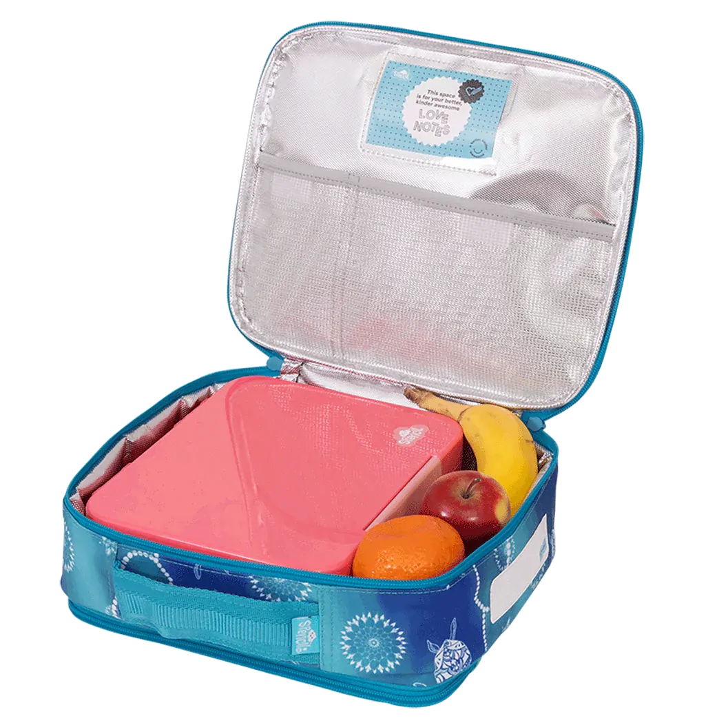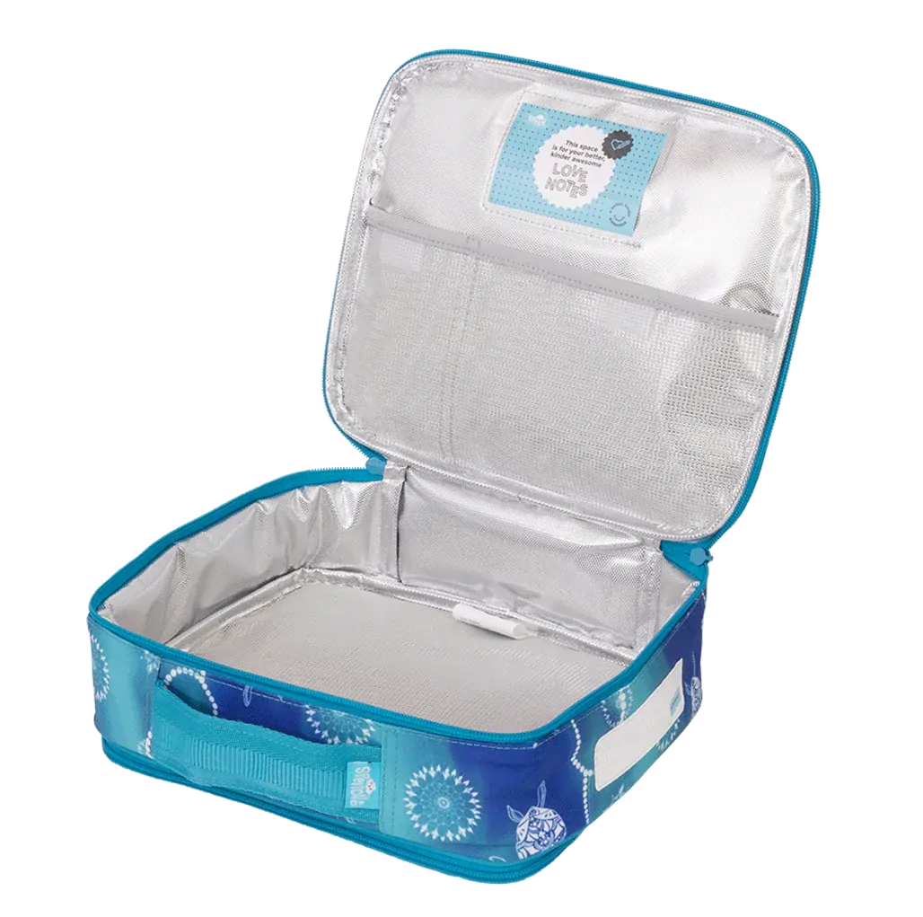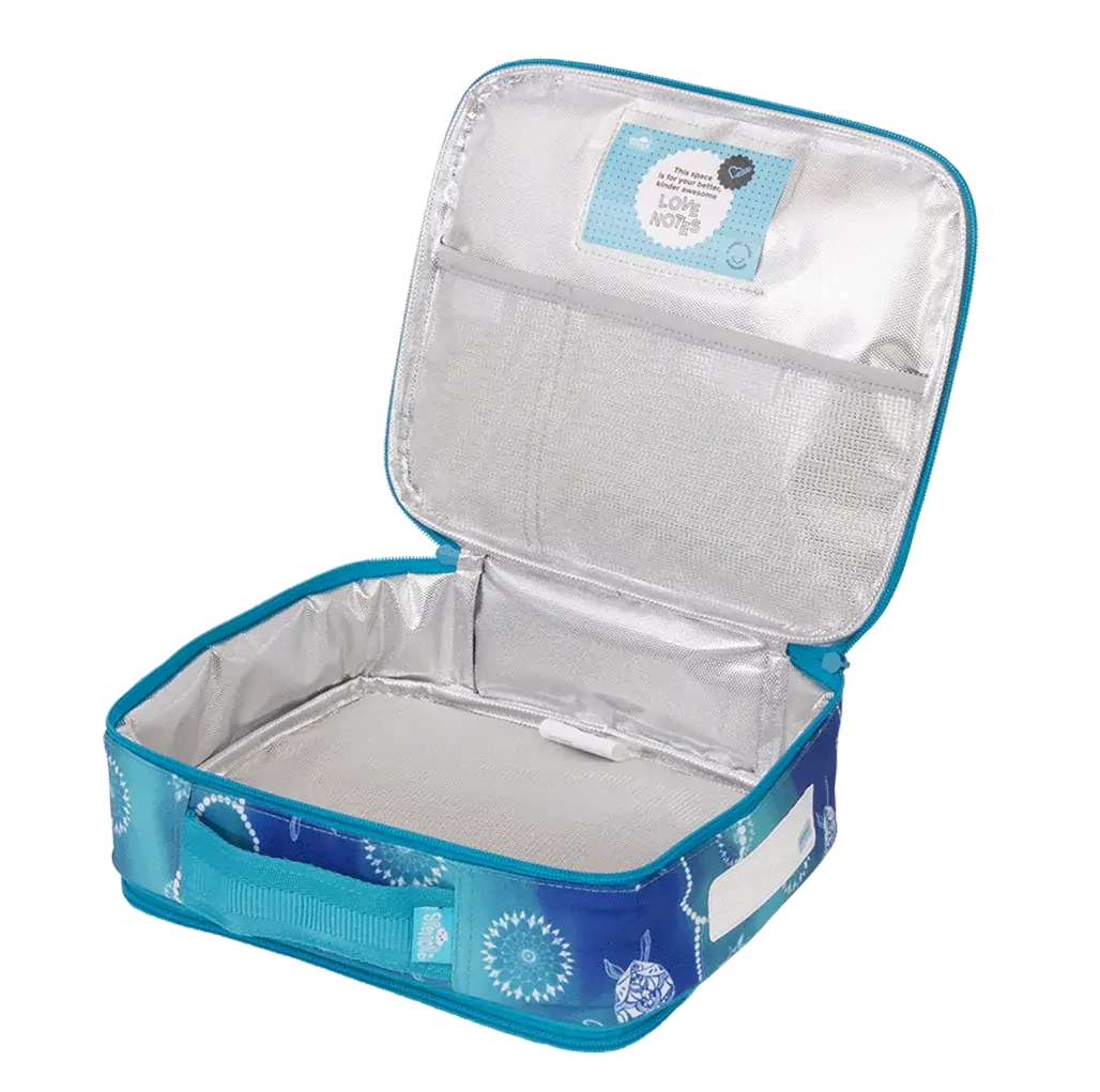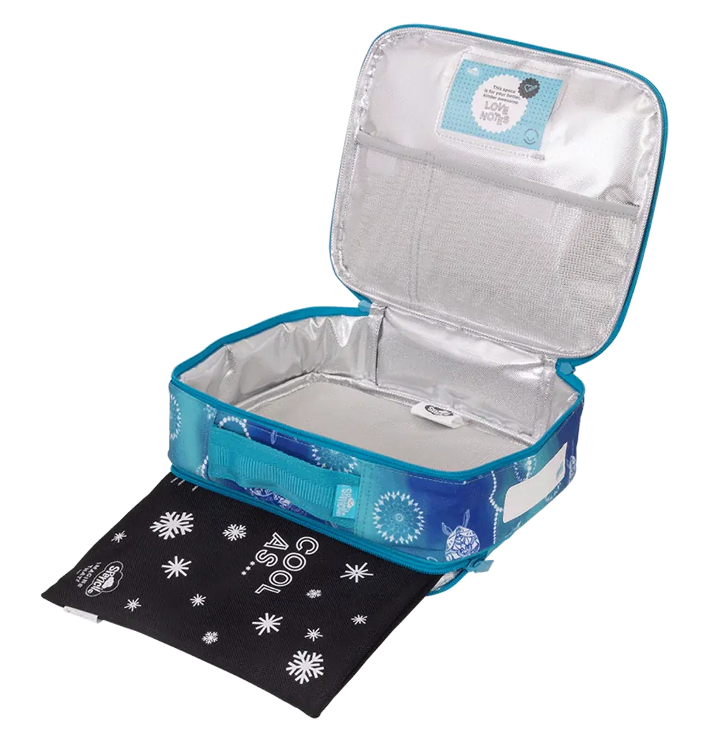 The Big Cooler Lunch Bag is the ideal bigger size, perfect for fitting the Big Chill Pack and the All-in Lunch Box with extra room for fruit or small containers like our Snack Attack Box side by side! With aluminium food-safe silver lining, a back zip pocket that perfectly fits the Big Chill Pack, outside name label and an additional inside pocket for 'Love Notes' this is your go-to lunch bag for school and play!