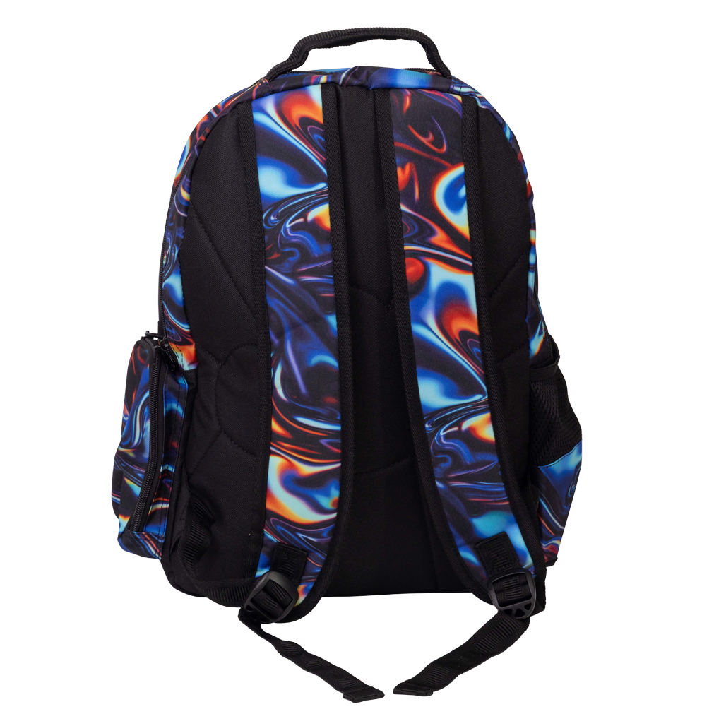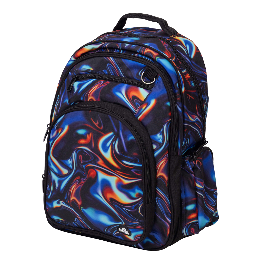 This Big Backpack sports a water bottle compartment, side zip compartment perfect to hold a phone, inner padded pocket for a laptop/tablet and D-loop and lobster clips for bag tags and clipping coin pouches and wallets. This bag is both super cool AND practical.