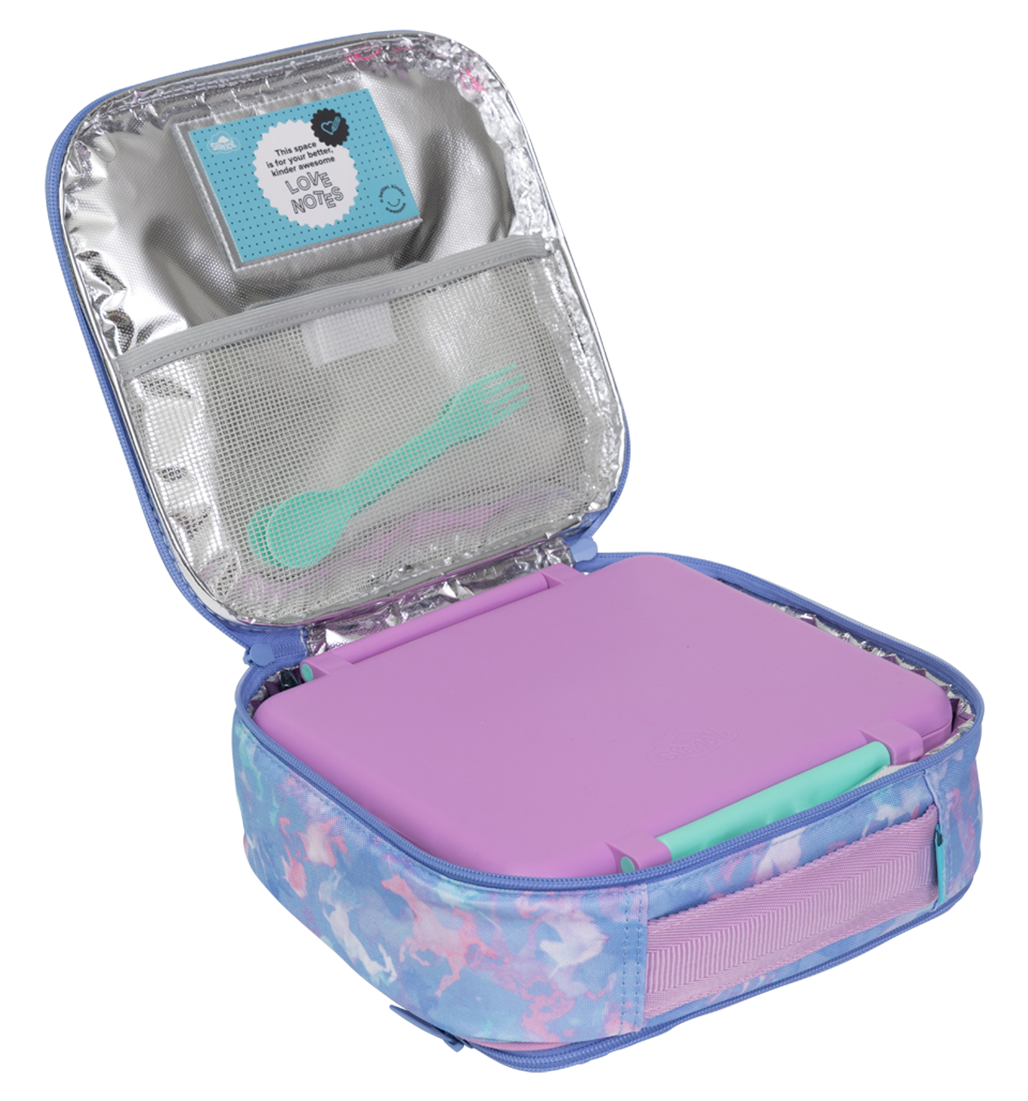 It's perfect for fitting the Spencil Little Bento Box and Little Chill Pack with room to spare for fruit or small containers! With aluminium food-safe silver lining, a back zip pocket that perfectly fits the Little Chill Pack, an outside name card pocket and an additional inside pocket for 'Love Notes', this is your go-to lunch bag for school and play!
