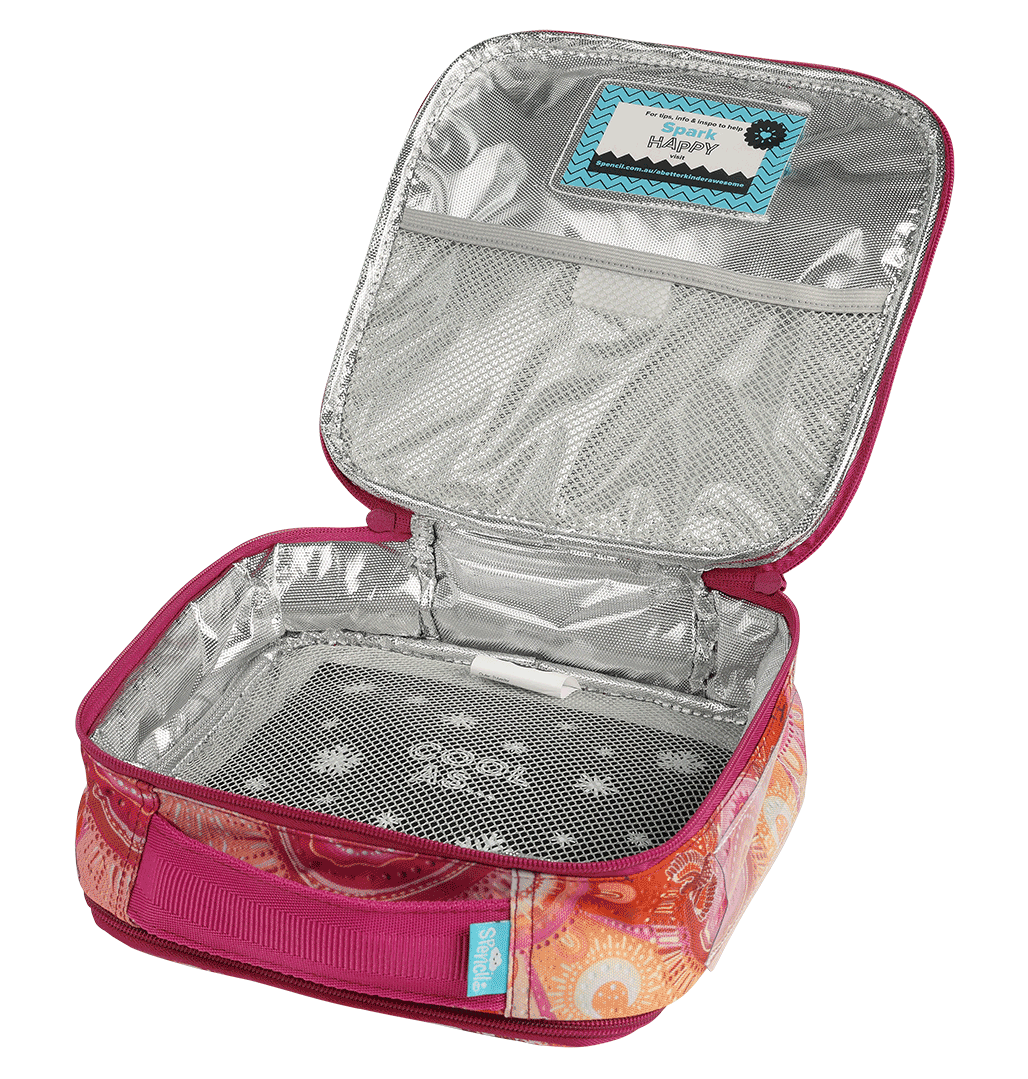 It's perfect for fitting the Spencil Little Bento Box and Little Chill Pack with room to spare for fruit or small containers! With aluminium food-safe silver lining, a back zip pocket that perfectly fits the Little Chill Pack, an outside name card pocket and an additional inside pocket for 'Love Notes', this is your go-to lunch bag for school and play!