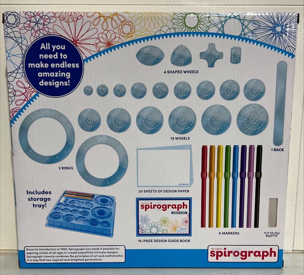 Draw beautiful spiral designs and patterns with the Spirograph Design Kit With Markers.