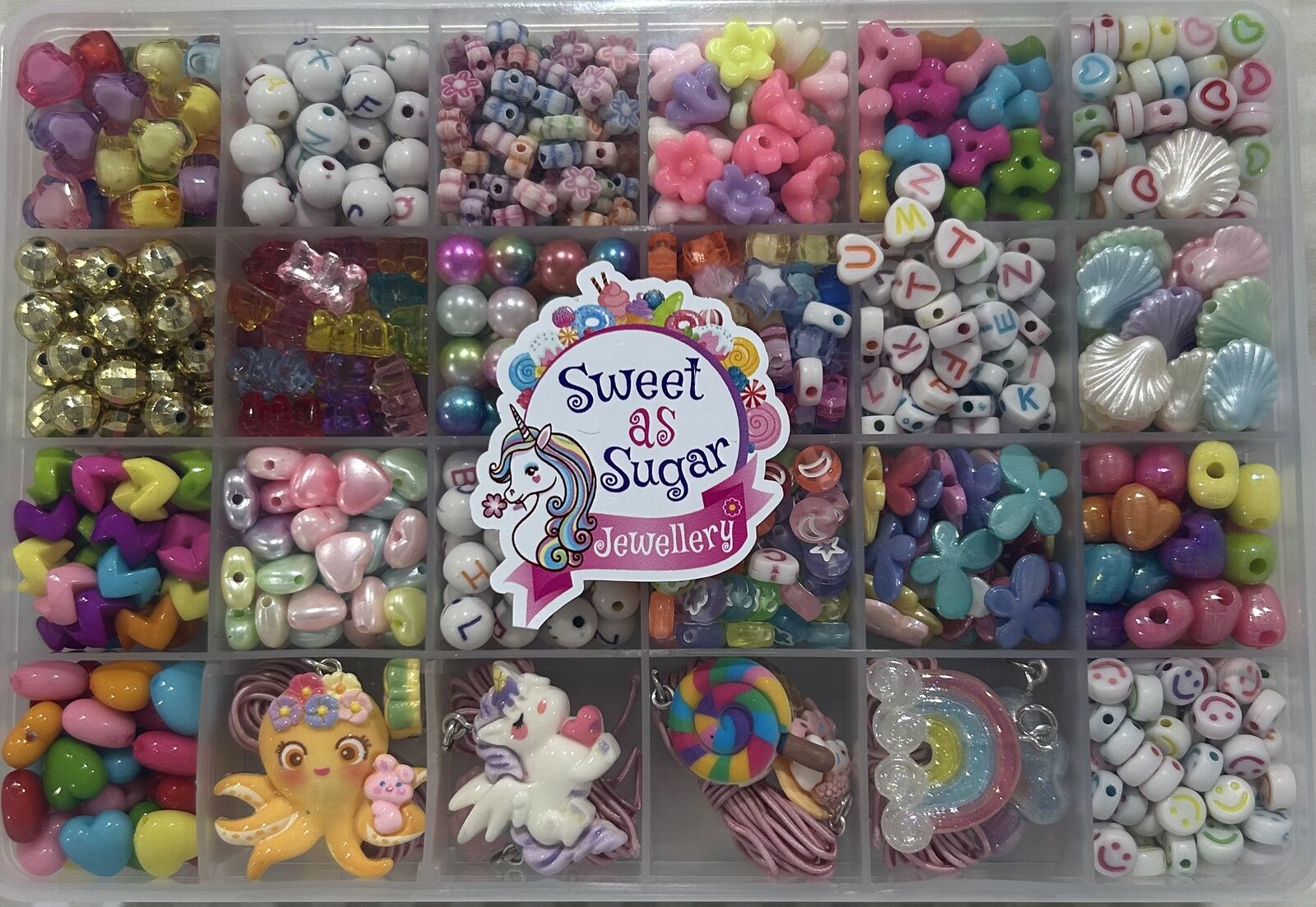 Comes complete with approximately 380 x beads beading elastic and x mixed charms. All packed into a convenient storage container