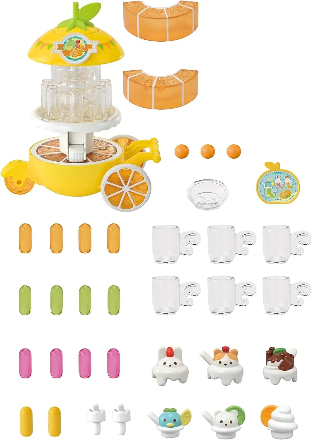 This set includes Enrique, the Citrus Bird father and a fun, portable juice wagon in the shape of fruit. It features a gimmick where fruit rolls down the machine and delicious juices can be made. The juices also come with cute toppings.