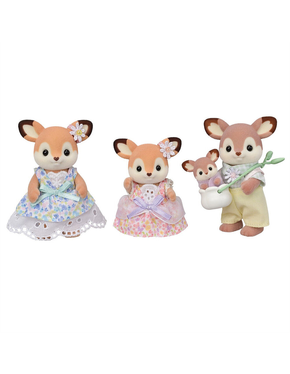 Meet the Deer Family, including Father Marius, Mother Primrose, Sister Sofia, and Baby Aster. These miniature animal figures are dressed in removable fabric clothing and are made with high-quality fabric that gives them a soft velveteen surface. Each figure has articulated arms, legs, and head, and their own unique story.