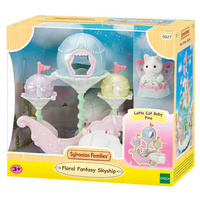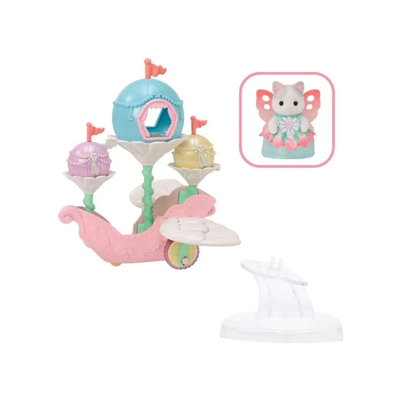 This set contains a skyship with lots of fun features and the Latte Cat baby in a cute fairy costume! The wings of the skyship flap up and down as it moves. Child and baby figures can sit in the skyship. The skyship can be placed on its stand and used as an ornament. It looks like it's really flying!