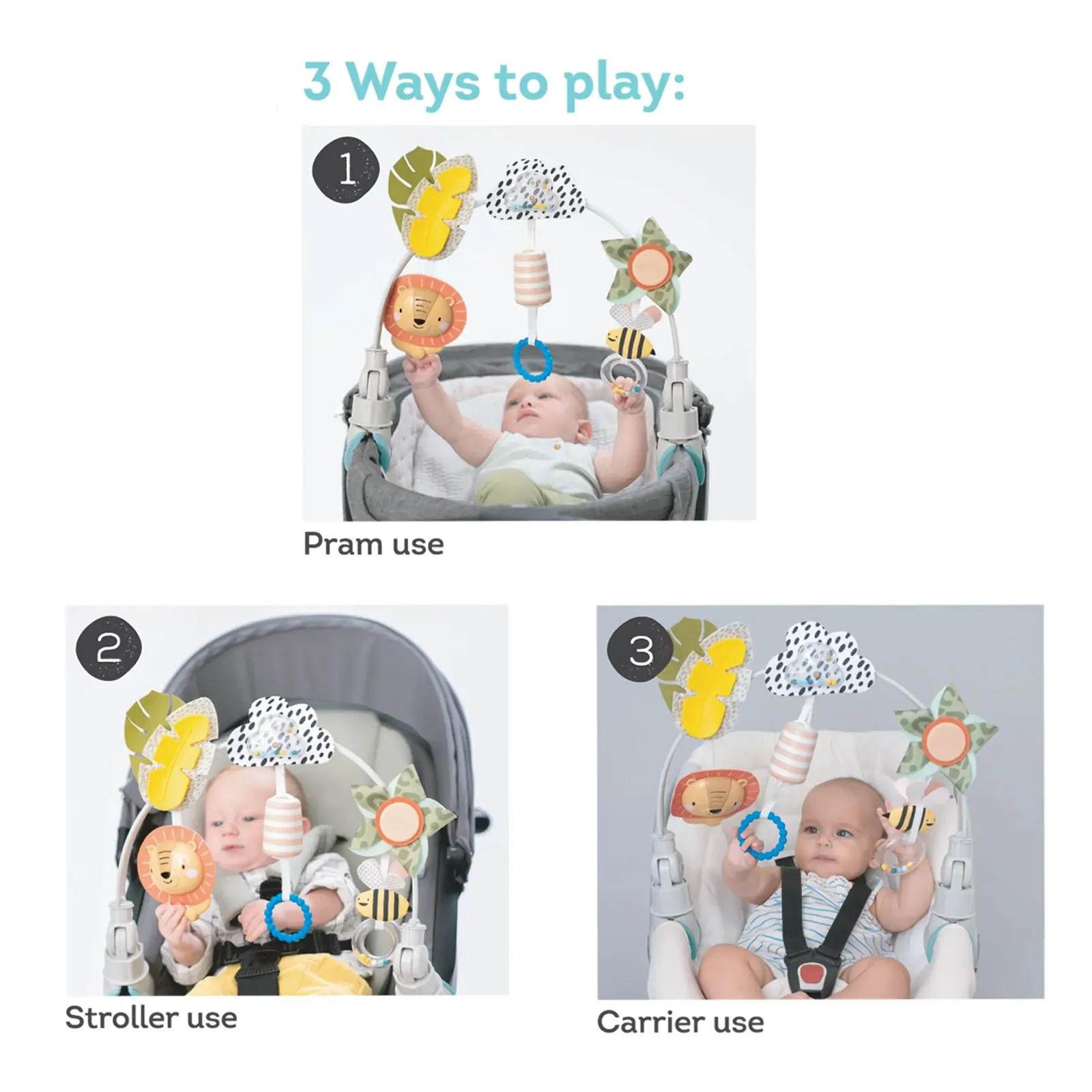Our Savannah Adventures arch keeps baby amused while strolling along! The Savannah Adventures arch is flexible with fascinating instrumental toys to stimulate baby's discovery of sounds, senses & motor skills development.