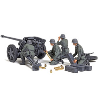 First delivered to units in July 1940, the Pak 38 5cm was a successor to the 3.7cm Pak 36. It featured design upgrades such as a muzzle brake, aluminum alloy trail legs, and a gun shield composed of two sheets of 4mm plate; using Panzergranate 39 shells it defeated 61mm of 60-degree armor from 500 meters. First deployed in the Balkan theater in Spring 1941, the Pak 38 saw action in areas from the Eastern Front to North Africa and 9,600 of this trusty weapon were manufactured up to 1943.