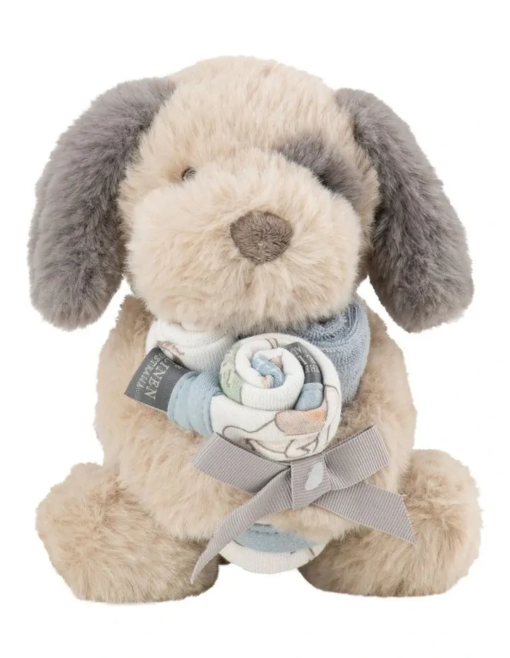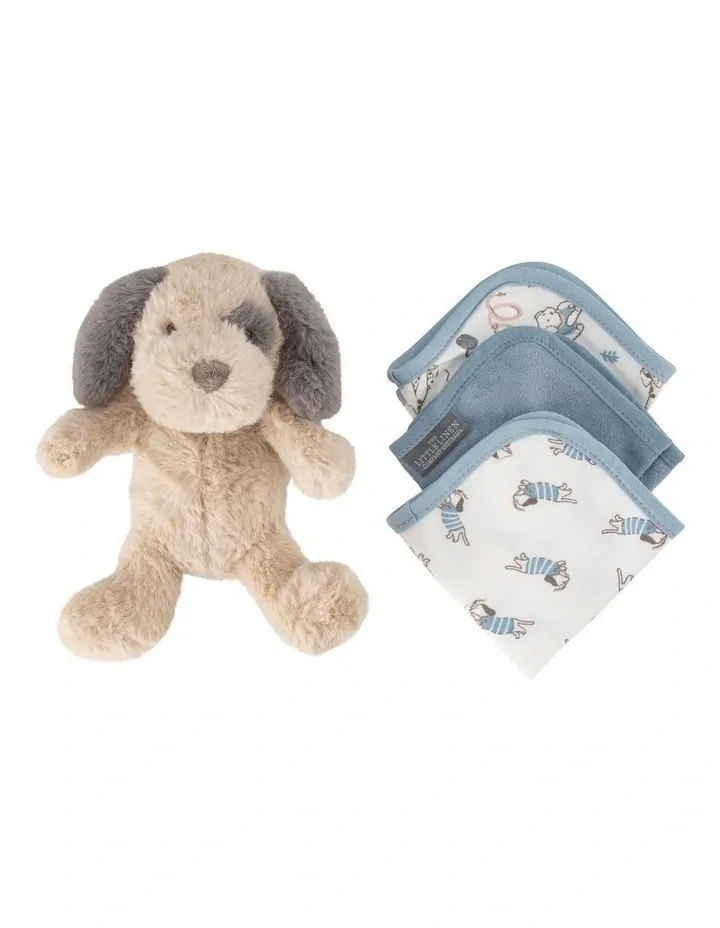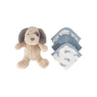 The Little Linen Company Plush Toy & Washers - Barklife Patch, the perfect companions for your little one! The adorable plush toy is a soft and huggable cuddly friend that will keep your child company during playtime and bedtime. Our washers are practical and versatile, made from soft printed knitted terry with contrasting trim.