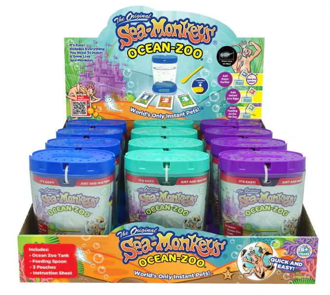The Ocean Zoo® Tank includes everything you need to hatch and grow live Sea Monkeys!