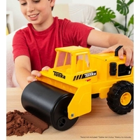 Experience the thrill of operating your own mini construction site with the Tonka Steam Roller. It's street tough, built with steel and sturdy plastic to withstand the roughest playtime adventures, and able to handle any terrain. No obstacle can stand in your way as you take on the steepest slopes and the bumpiest roads! This vehicle's roller can be filled with sand, dirt, or water, giving you the ability to make it even heavier and more dynamic. Watch as you conquer bumps, ridges, and obstacles with ease, leaving a perfectly smoothed path in your wake! With an impressive 60 degrees of motion, the Tonka Steam Roller can twist, turn, and navigate like a true construction champion. No obstacle stands a chance in front of this yellow marvel! It's time to let your imagination run wild and experience the freedom of movement that the Tonka Steam Roller provides.