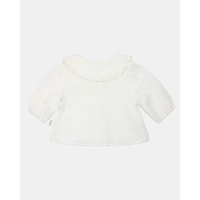 Elastic sleeve openings ensure a snug and comfortable finish. Quality crafting guarantees lasting durability, making this blouse a stylish and practical addition to your baby's wardrobe.