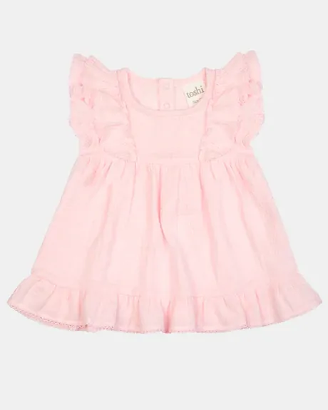 Toshi Baby Dress Sammy is crafted from the finest quality certified 100% organic cotton yarn. The cheesecloth fabrication features a supremely soft and gently nurturing texture. The classic colours create wardrobe staples, and are ideal for layering and transeasonal styling. The A-line shape is flattering and comfortable, with space for freedom of movement. Feature frill creates a playful and charming touch. The dress has back press studs for convenient dressing. The beautiful Toshi Baby Dress transitions effortlessly from casual occasions to special celebrations.