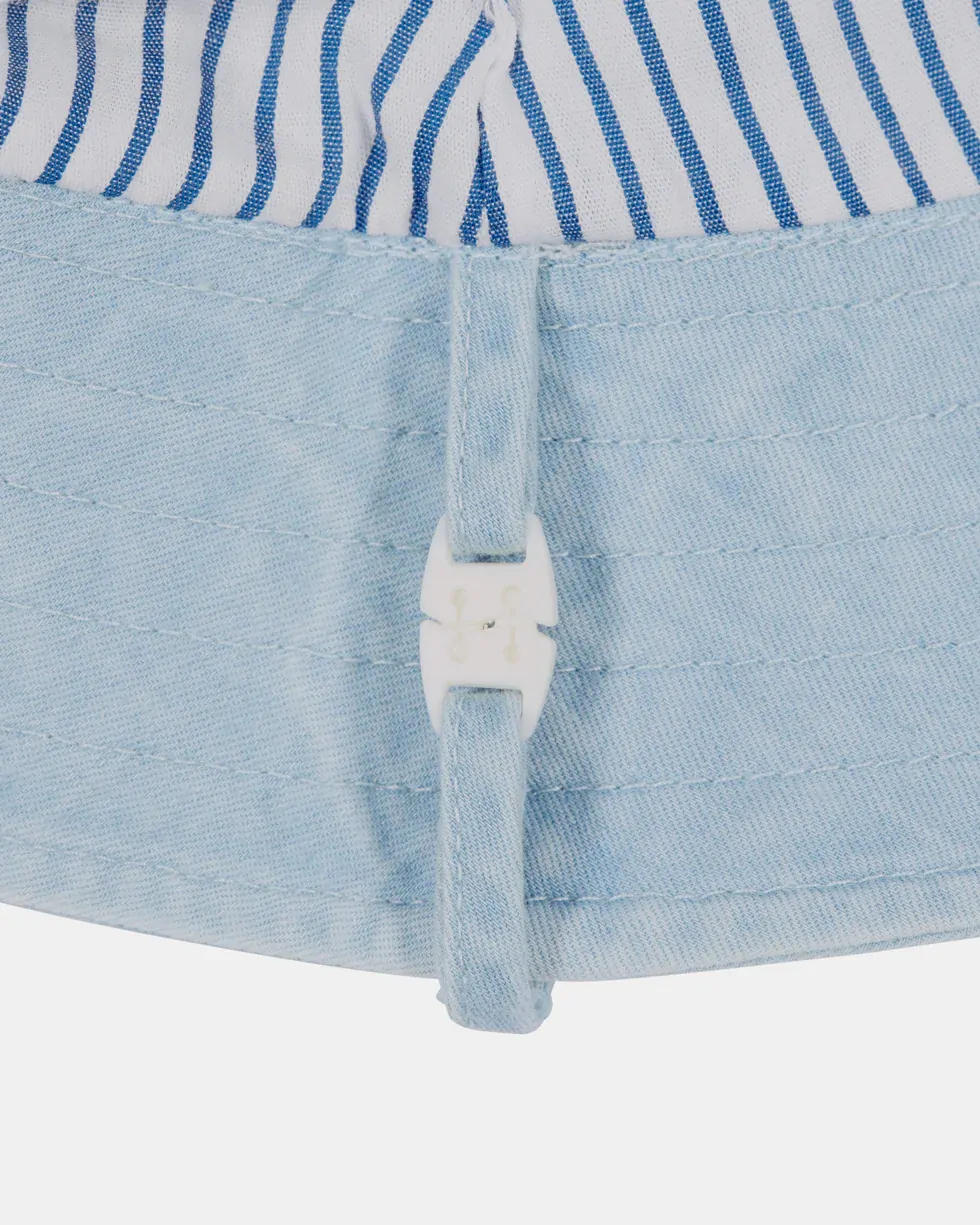 Toshi presents the classic Bucket Hat Billy, ideal for children of all ages. The Toshi bucket has a well-structured brim. The UPF 50+ UV rating indicates optimal sun protection. The chinstrap with soft cotton toggle secures the hat for ease of wear. A security release clasp on the chin tie is designed to enhance wearer safety. The classic Toshi bucket hat is crafted from the finest quality 100% cotton and is fully lined for additional comfort.