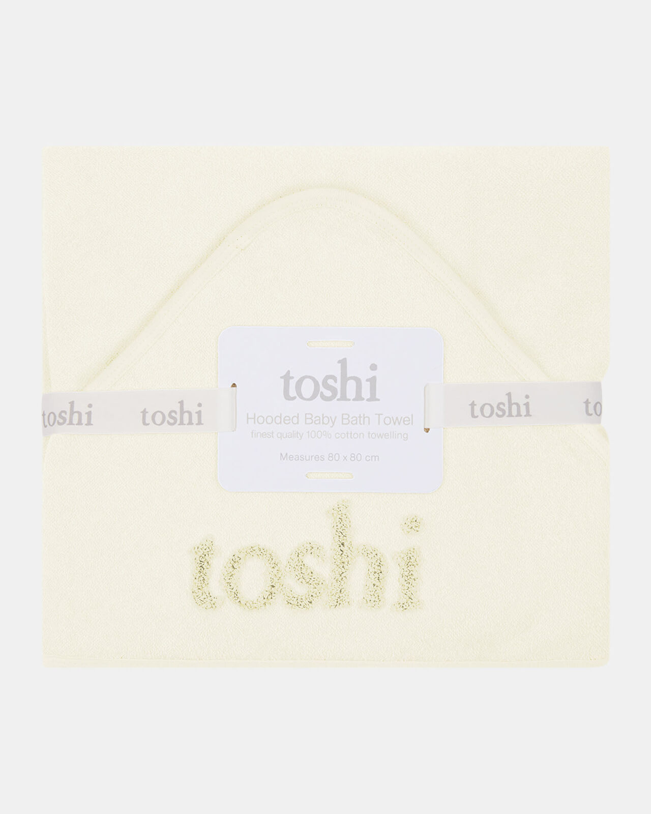 Toshi Hooded Baby Bath Towel Yummy Cream is for baby bath time after swimming or everyday washing. The hood gently protects and keeps the head warm and dry for reliable comfort.