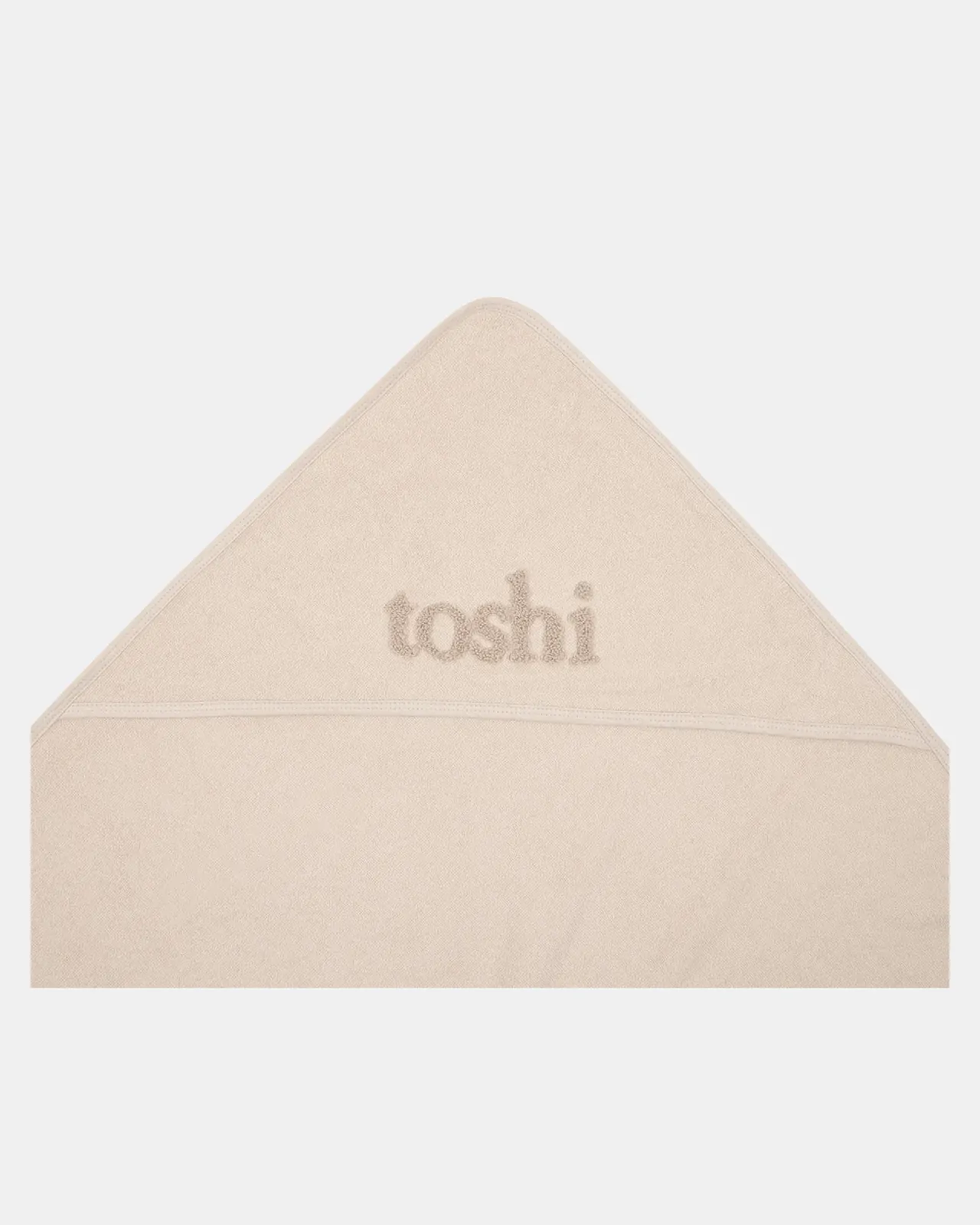 Toshi Hooded Baby Bath Towel Yummy Oatmeal is for baby bath time after swimming or everyday washing. The hood gently protects and keeps the head warm and dry for reliable comfort.