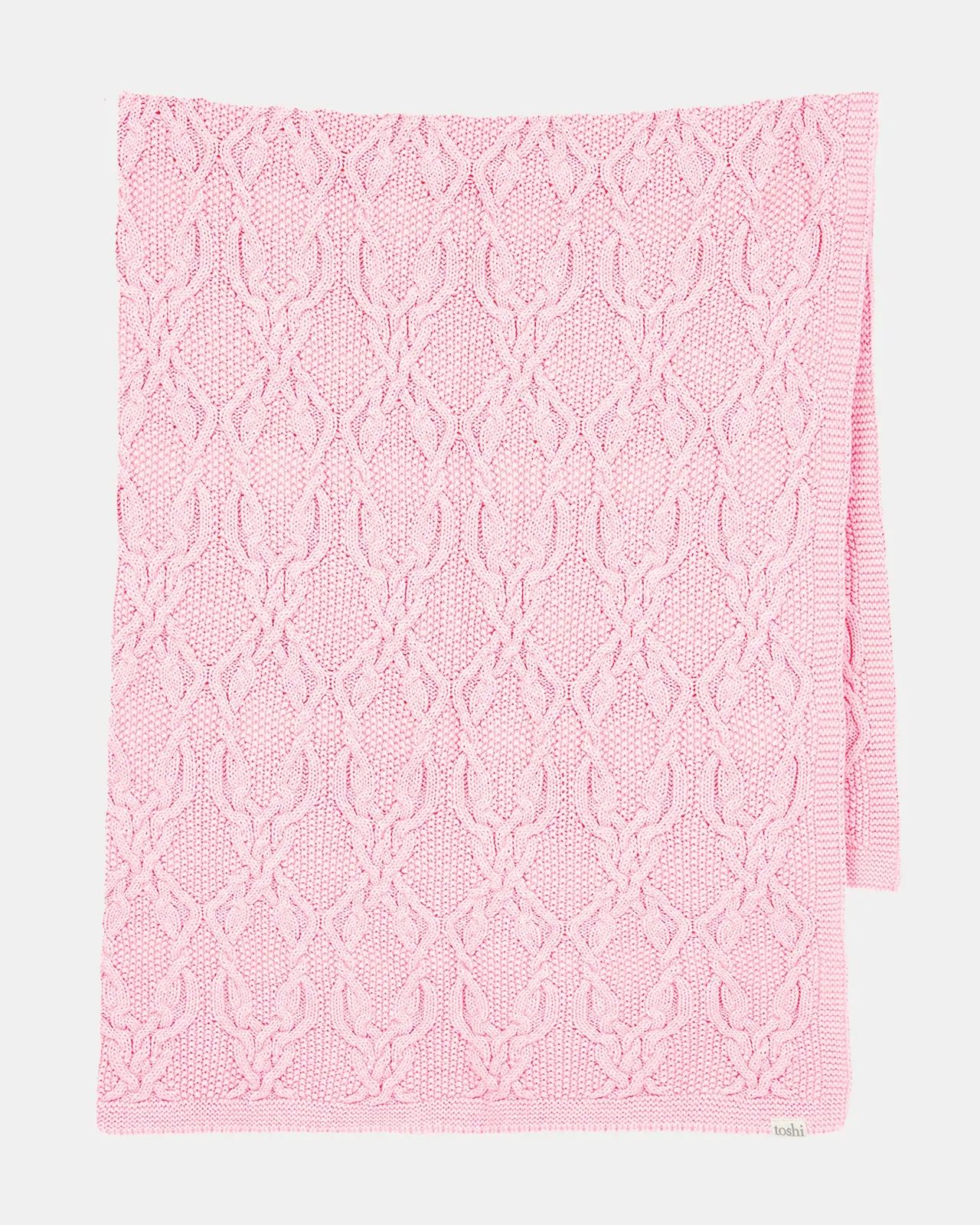 The sumptuously soft Toshi Organic Baby Blanket Bowie has a hand crafted feel and features a beautifully textured cable knit design. The finest quality certified 100% organic cotton yarn is as gentle on your baby's delicate skin as it is on our precious environment. Melange yarn offers a level of refinement to this sophisticated Toshi baby accessory. The Toshi baby blanket measures 90 x 110cm.