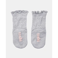 Toshi Organic Socks for toddlers feature a skid resistant sole grip for safety during active play. The socks stay up, gently contouring the foot while supporting healthy circulation.