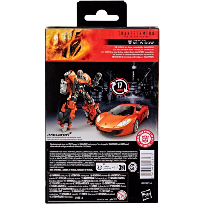 Bring the epic action of Transformers: Age of Extinction from the screen into your collection with the Transformers Studio Series 4.5-inch (11.5 cm) Deluxe Class Concept Art KSI Widow action figure! Transformers Studio Series toys are collectible action figures that feature movie-inspired details and accessories. Convert the Studio Series Transformers action figure from robot to McLaren MP4-12C car mode in 17 steps. The figure has articulated head, arms, and legs for action poses. Look for more Transformers Studio Series collectible figures to build a movie-inspired collection (each sold separately, subject to availability)!
