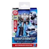 The Transformers: EarthSpark Deluxe Class Cyberglow Megatron figure converts from robot to jet mode in 15 steps and features cool glow-in-the-dark details and accessory! Fans of the animated series will love imagining epic battles with this 5-inch (12.5 cm) Megatron figure in robot mode, then changing it into jet and pretending to fly in to save the day! This 2-in-1 toy also comes with a glow-in-the-dark mace accessory that can be attached to the figure. Look for more Deluxe Class Transformers figures (each sold separately, subject to availability) featuring popular characters from the Transformers: EarthSpark show, an animated series that centers on two human kids as they forge a connection with Transformers robots like never before and work alongside fan favorites like Optimus Prime and Bumblebee! TRANSFORMERS and HASBRO and all related trademarks and logos are trademarks of Hasbro, Inc.