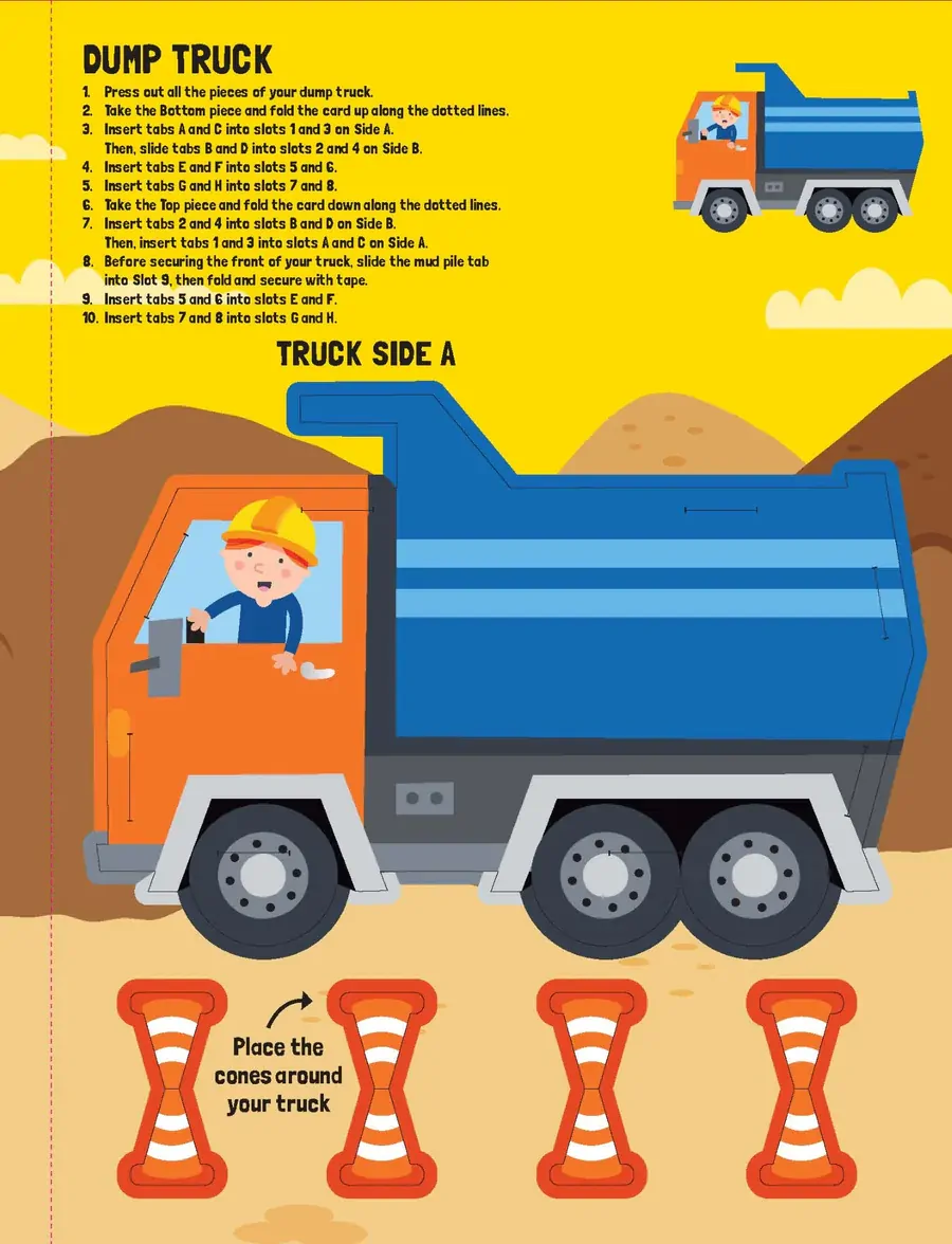 • 8 pages of press-out pieces to make your own worksite, with a truck and digger to construct.