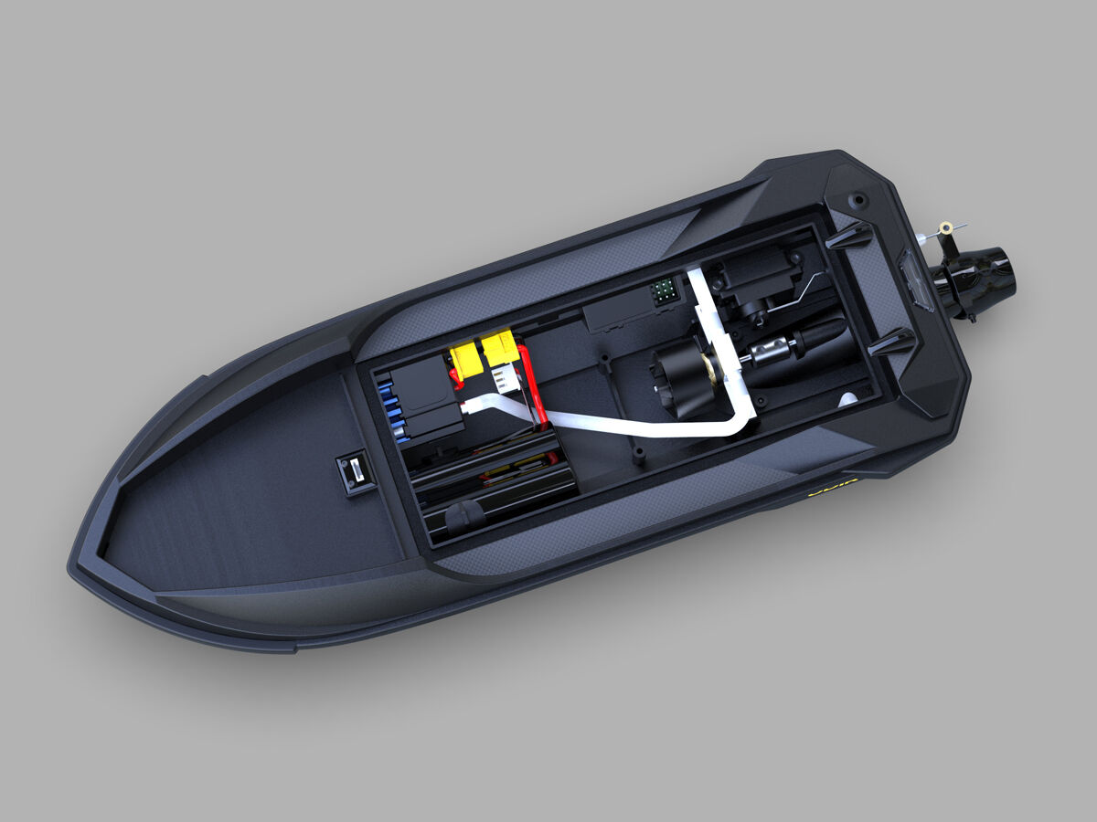 - The 362mm long shallow V-shaped hull design features a high-strength ABS simulated hull, strong jet pump power, and superior underwater performance. Able to navigate freely in shallow and rocky areas, without fear of collision and entanglement of various underwater obstacles.