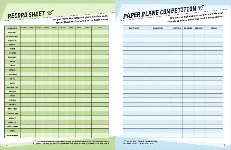 • Hours' worth of activities with record sheets for paper plane competitions and testing.
