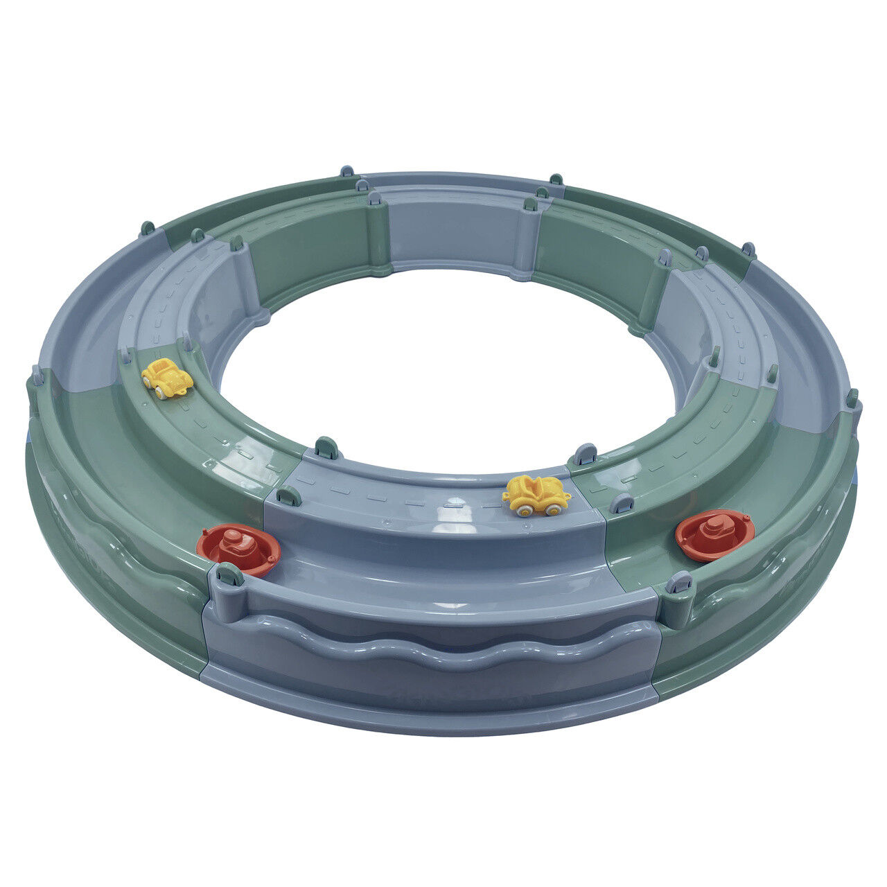 This stackable sandpit includes two pathways — one water channel and one road channel — creating exciting options for sensory and small world play. Fill the centre with sand for hours of scooping, shaping, and construction fun, then use the included boats and cars to design busy little scenes. Children can create road adventures, water journeys, and transport missions all in one play space, building storytelling skills as they explore cause-and-effect through movement and sensory play.