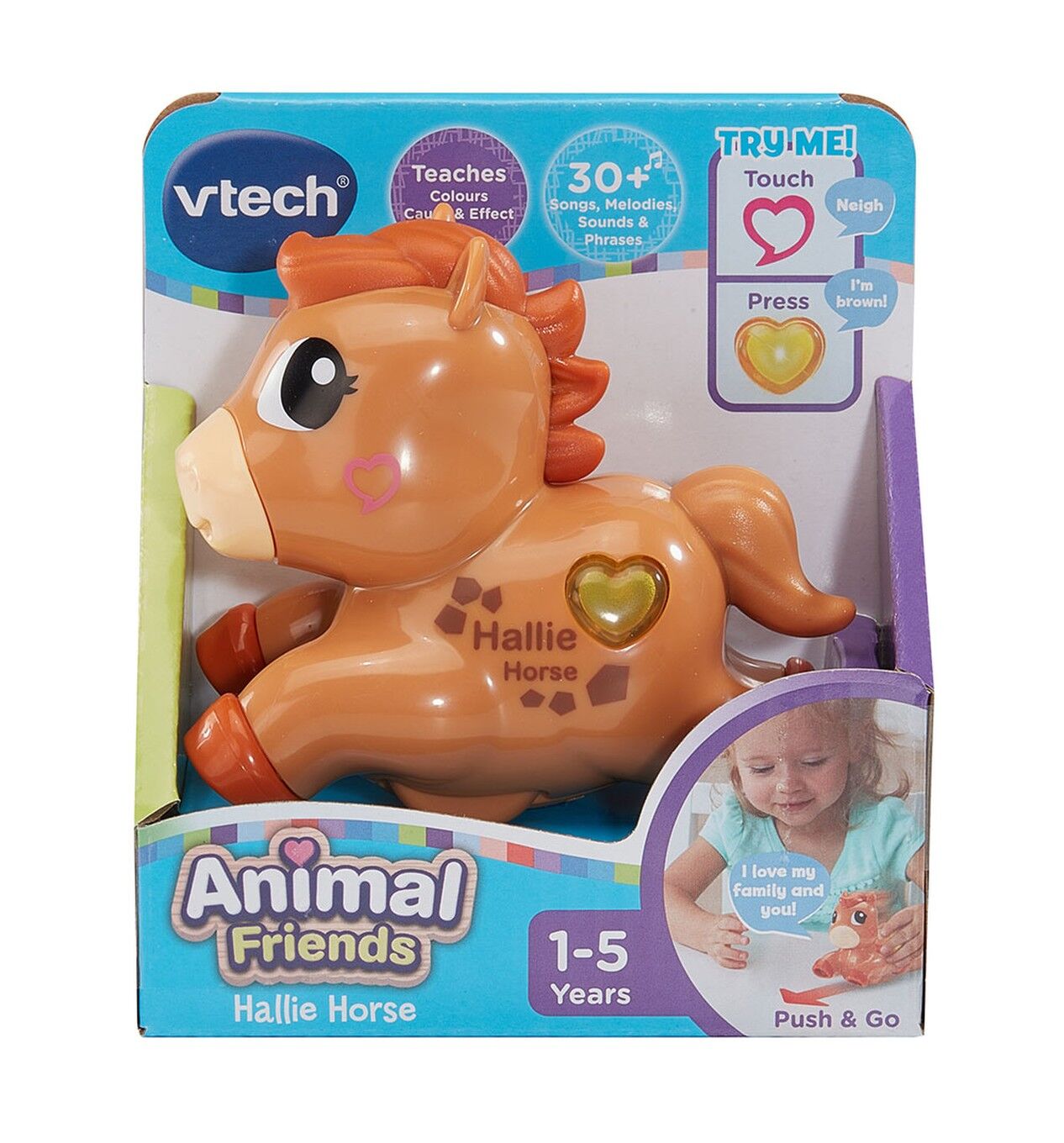 Press my light up heart button to trigger fun music, sounds and songs. Push me along for more reactions or press my cheek to hear me Neigh and kiss!